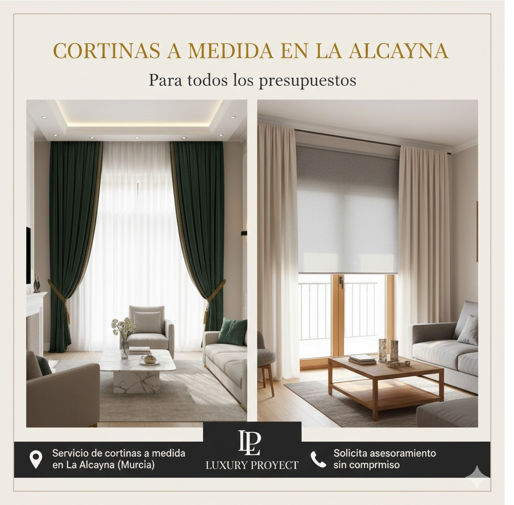 En Luxury Proyect realizamos cortinas a medida en La Alcayna, ofreciendo soluciones personalizadas adaptadas a diferentes presupuestos y necesidades, tanto para viviendas unifamiliares como para